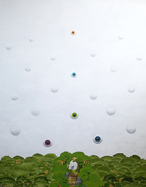All remnants of the historical monuments have been painted over and now a psychedelic and euphoric journey through The Dawn has emerged. The current idea for these newly painted spheres is to turn them all into different colored ‘eyeballs’ but I’m not sure about that. My original thought was to have each eyeball attached to a plant or tree…like a blooming flower. I’m exploring all possibilities right now and just going with the flow. Even the monkey scene is in danger…